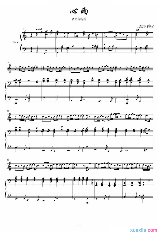 《心雨》是方文山填词,周杰伦谱曲,周杰伦演唱的一首歌曲,讲述了一个在外留学的游子与其即将逝去的女友的凄美的爱情。该歌曲曲风忧伤,但又不深沉,给人以无限的遐想。下面跟着小编一起学习周杰伦心雨钢琴谱吧。