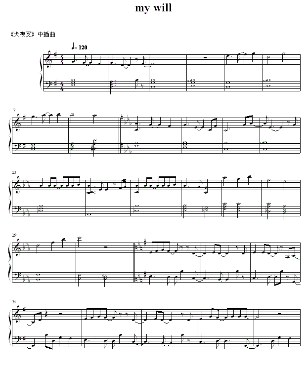 今天为大家整理了:犬夜叉my will钢琴谱,希望大家喜欢。