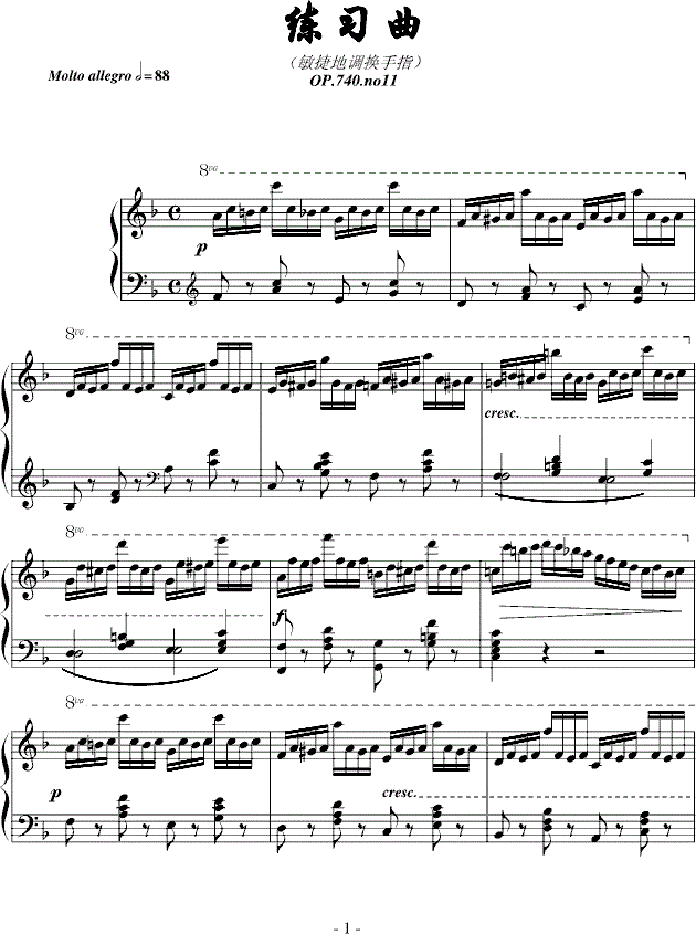 车尔尼740第11首钢琴谱_车尔尼740钢琴简谱