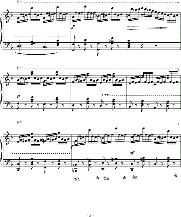 分手练 钢琴演奏是多声性质的,会遇到复杂的声部层次问题要处理。两只手或一只手的不同手指要负担完全不同的演奏任务;如不同的强弱关系,不同的节奏关系,不同的奏法、音色处理等。这需要两只手或两个以上手指做完全不一致的演奏动作,没有分手练习作基础,就没有高质量。另外,两只手的技巧难度也全然不同,对负担困难技巧演奏任务的手给予更多的练习不仅非常必要,而且常常能更快地取得练习效果。