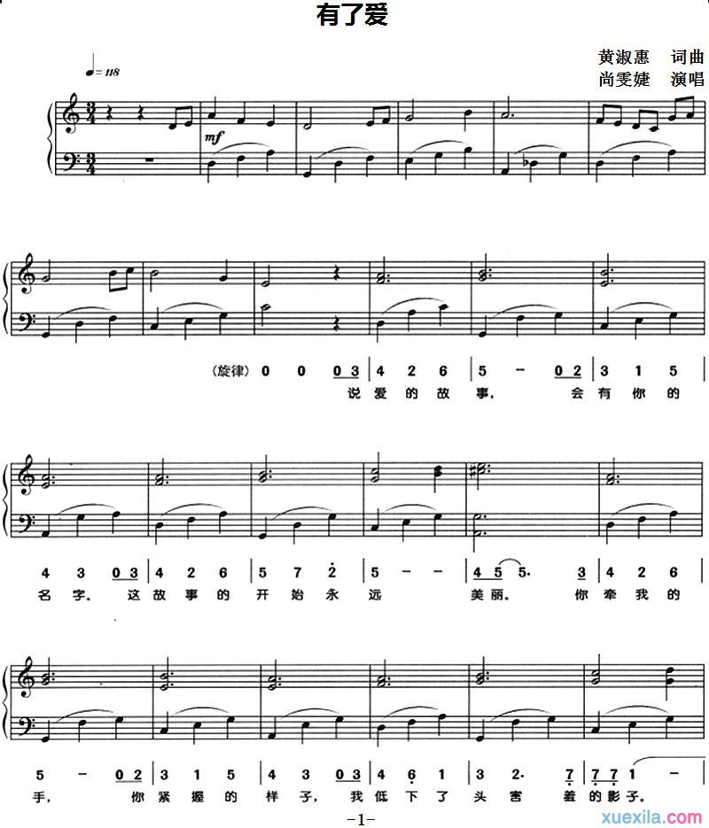 今天为大家整理了:有了爱钢琴谱,希望大家喜欢。