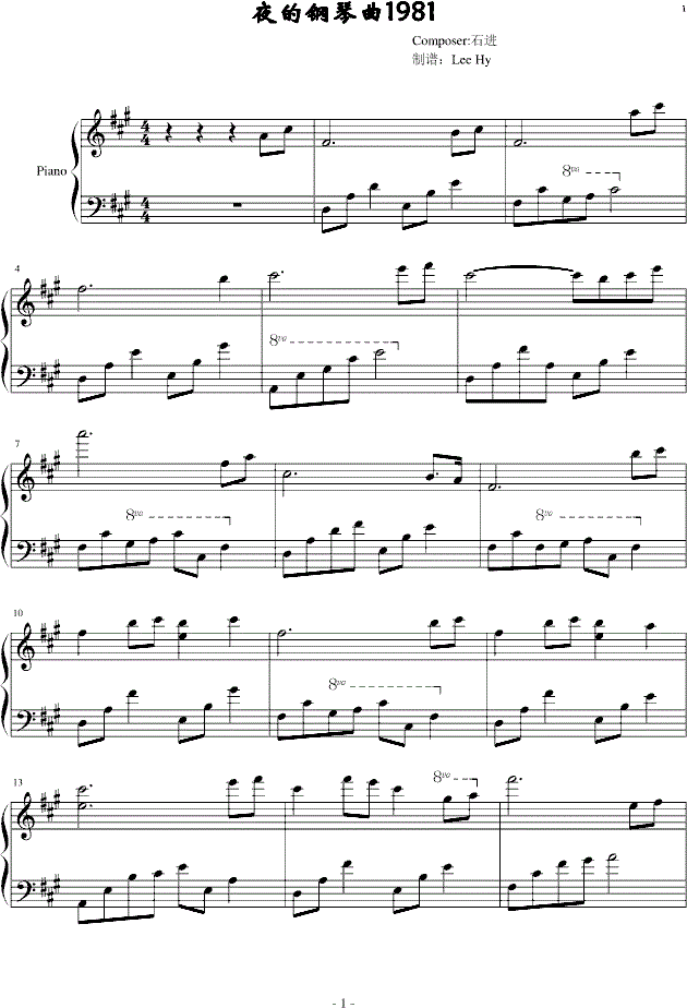 下面是专门为您整理好的:石进1981钢琴谱,希望您会满意。