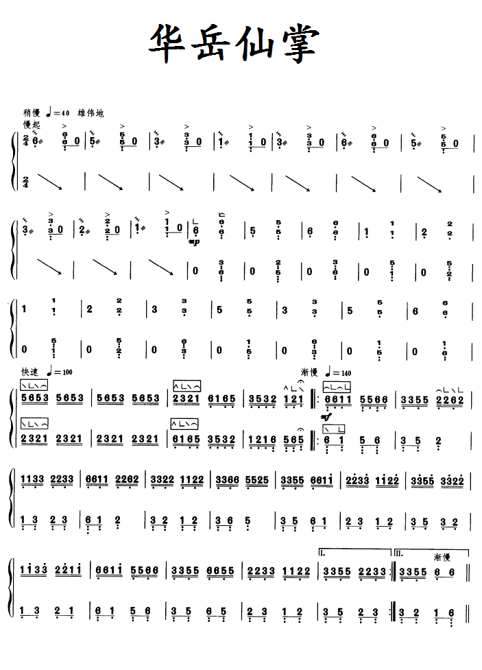 下面是为专门您整理好的:华岳仙掌古筝谱。希望您会满意。