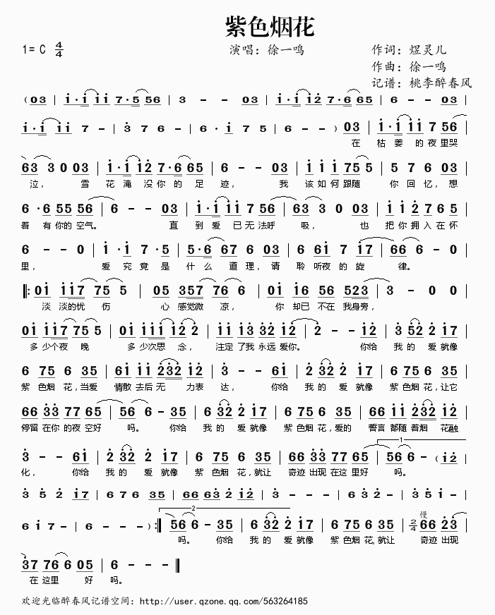 《紫色烟花》是由煜灵儿作词、徐一鸣(原名徐志强)作曲并演唱的一首歌曲,该歌曲收录于专辑《爱在2010》中。一起来看看为你带来的“紫色烟花简谱”,供大家学习欣赏。