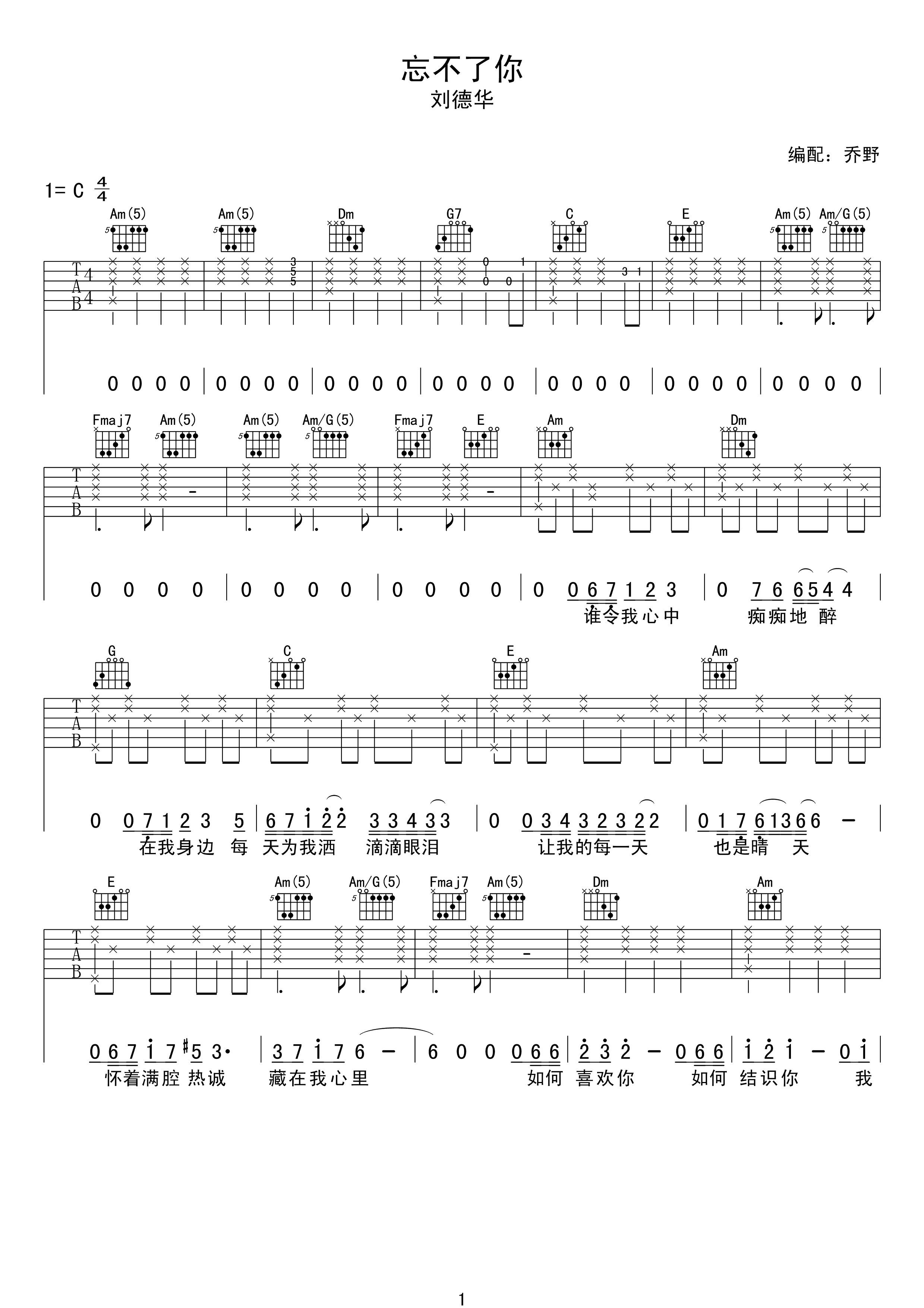 下面是为专门您整理好的:忘不了你吉他谱 刘德华。希望您会满意。