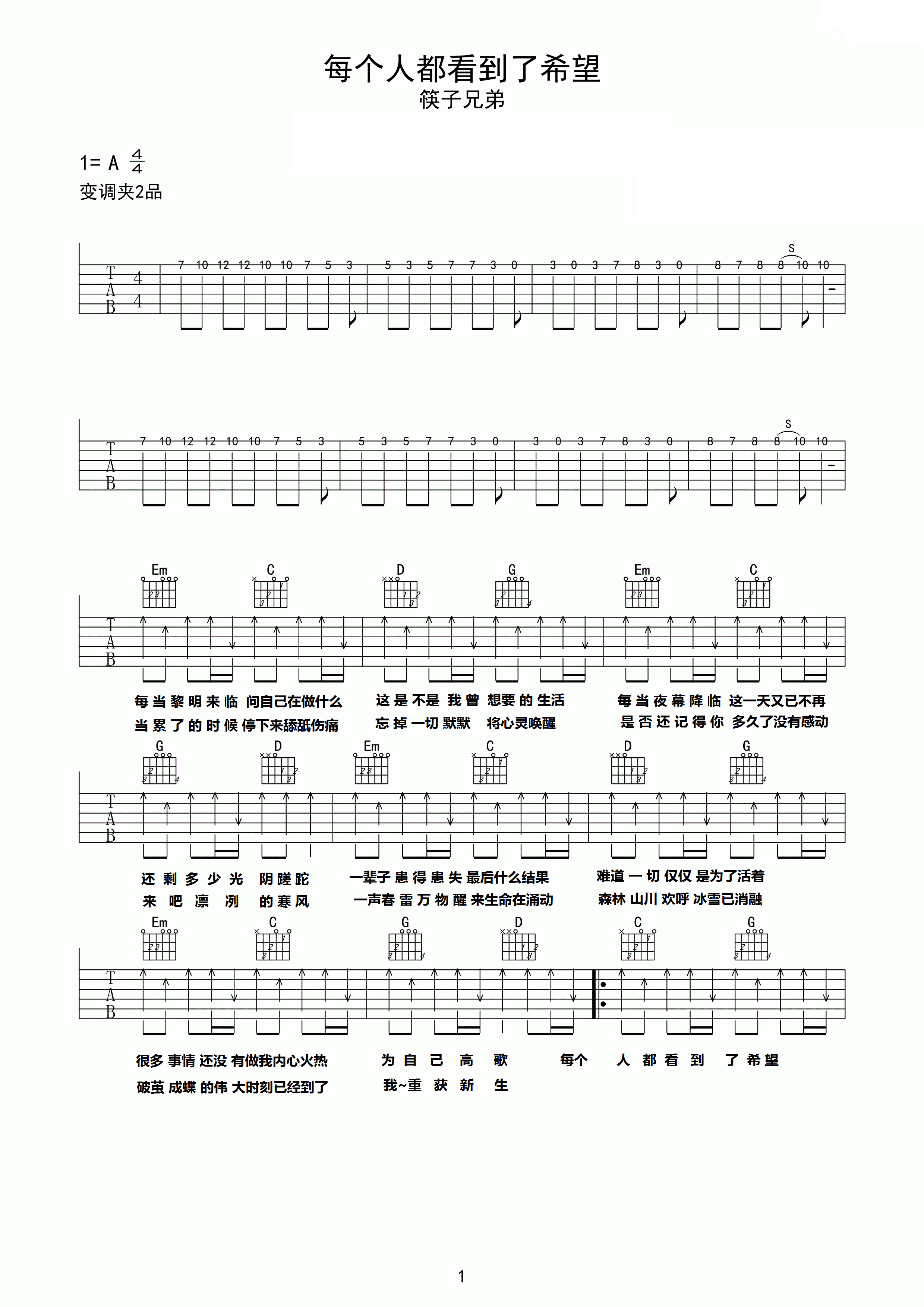 下面是专门为您整理好的:筷子兄弟每个人都看到了希望吉他谱。希望您会满意。