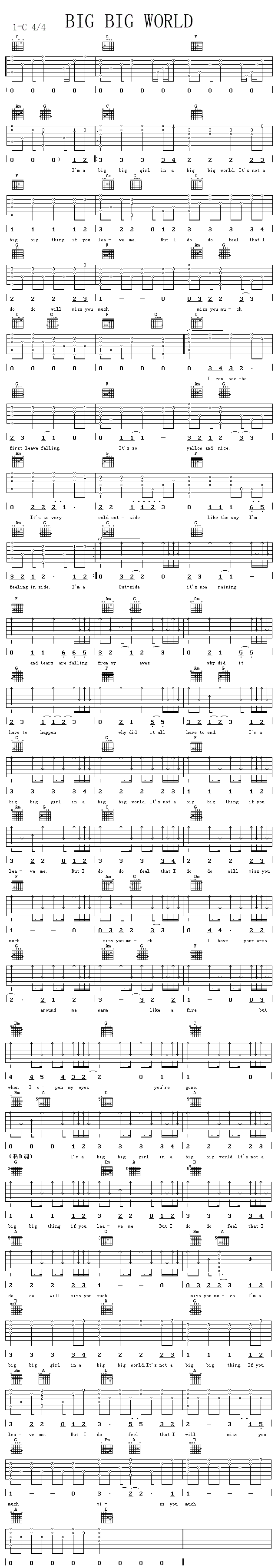 下面是专门为您整理好的:Emilia Big Big World吉他谱。希望您会满意。