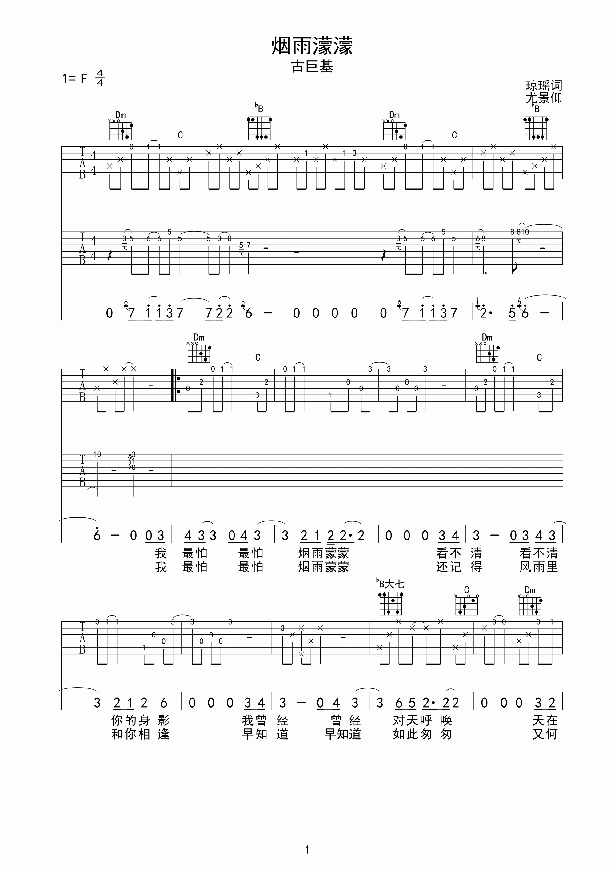 以下是为专门您整理的:古巨基烟雨濛濛吉他谱。希望您会喜欢。