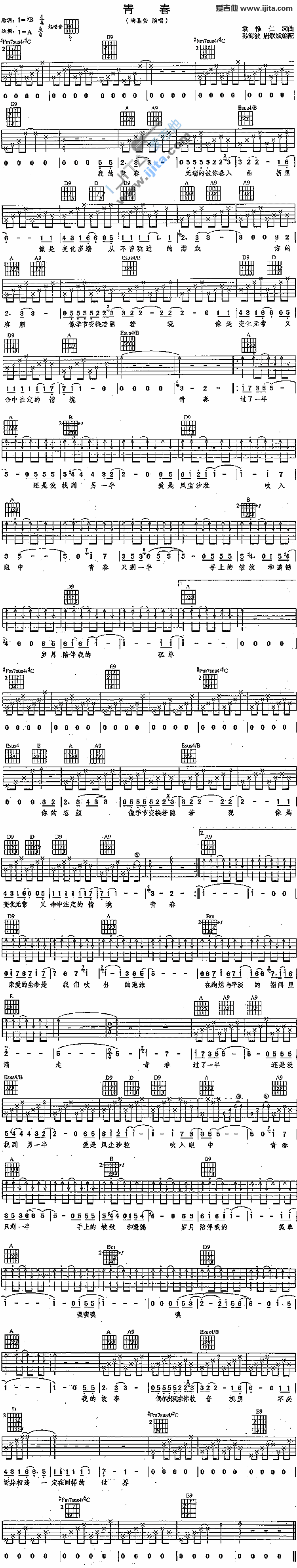 以上就是为大家提供的“青春吉他谱”,希望大家能够喜欢!