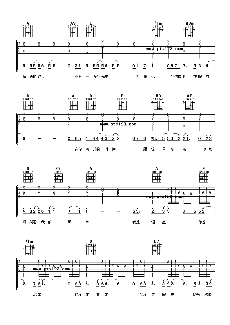 以上就是为大家提供的“恒星流星吉他谱”,希望大家能够喜欢!