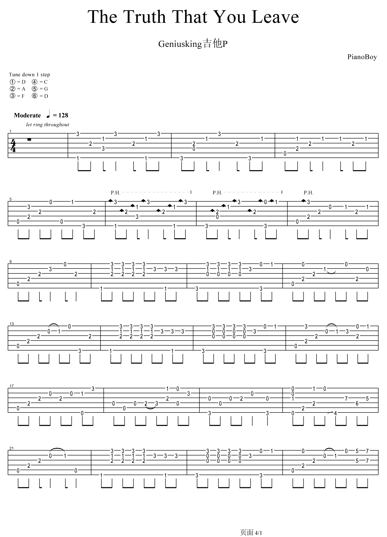下面是专门为您整理好的:The truth that you leave指弹吉他谱 PianoBoy。希望您会满意。