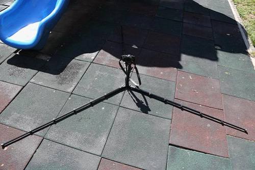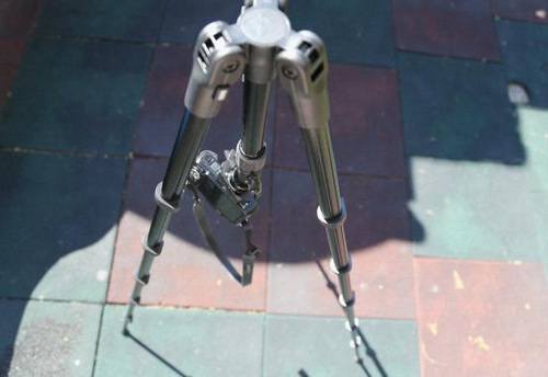 正常使用这款三脚架时,它一共有三种不同的可调角度,在脚管上方有三个不同角度的卡槽,你可以根据需求来设置你的拍摄角度。当然这只是小小的露了一手,其实这款脚架拥有180度的脚管调节能力,就是说它是一款可以饭折的架子。这几年反折三脚架逐渐成为了流行配置。通过反折可以让云台直接向下,当拍摄地角度时非常的方便。