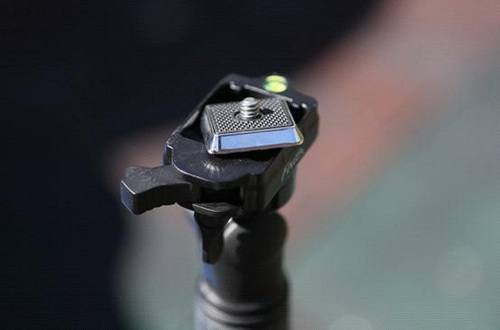 在云台快装板的下面还有一个扳手开关,那个是负责快装板部分的方向移动的。小编感觉厂商把这部分单独拿出来控制方向是很好的设计,因为如果都使用球台部分的方向调整势必要牵扯到水平部分,在水平部分已经调整好的情况下,快装板的这个方向调节自然变得容易,节省了很多的微调时间。