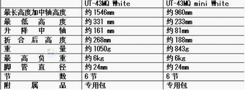 UT-43MQ mini White折叠后高度为188mm,展开后高度为960mm,伸缩比约为5.1倍,可随意放入摄影包内,不占用任何空间。