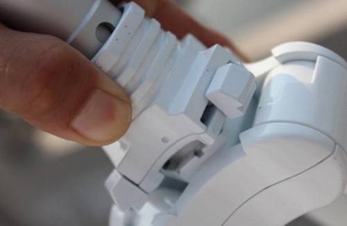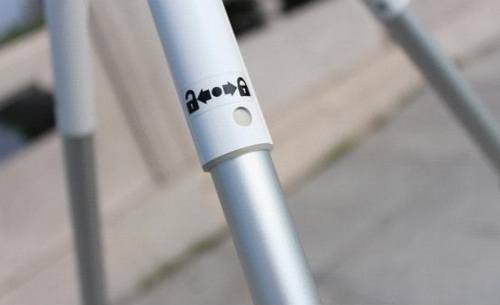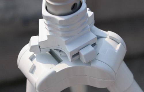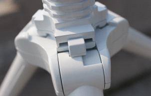 3 这两款三脚架都使用了三段式开脚机构。就是有三个脚开合的角度可供选择。而且不同于以往脚架采用锁死的机构,这次使用的是开放式卡槽设计。脚架本身有一个可选择的卡头,当把卡头放在代表不同脚管角度的位置时,架子就会卡在卡槽里,要想变换角度时,只需要调整一下卡头就可以了。非常的方便。