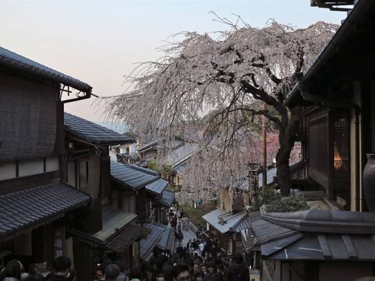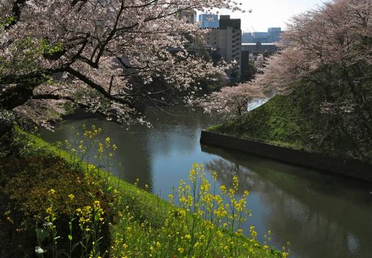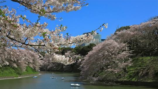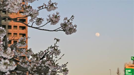4月5号上午飞东京,到达赤坂的酒店时已是下午4点多。放下行李后在酒店附近走走,夕阳西沉,月亮已挂上天空。