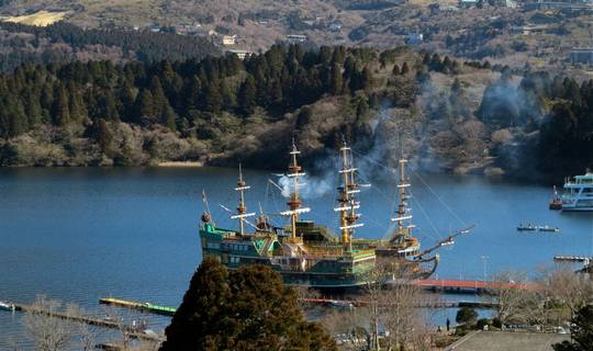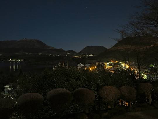 外面的风景看不清,应是芦之湖。长时间曝光的一张。