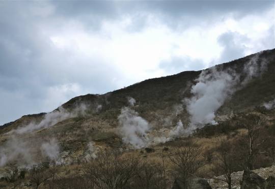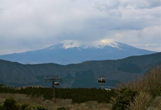 早餐后乘缆车观光,太阳的热气产生云雾,富士山已是藏头漏尾