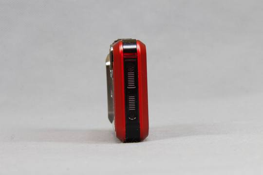 这种四防相机事实上造型要考虑防护性能,尽可能做得比较间接,松下TS20也不例外,四四方方的造型,当然四角采用圆弧设计。正面面板部分采用金属拉丝工艺。机身正面的左侧增加了凸起的卷边,方便用户握持。