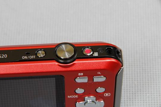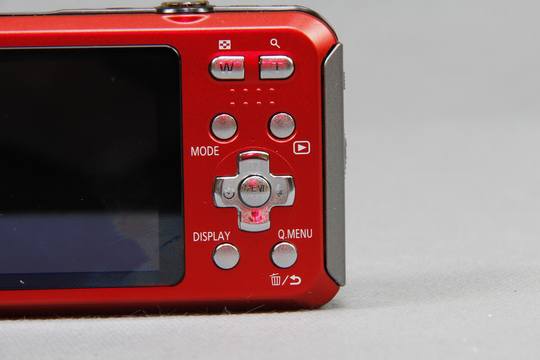 背面除了2.7英寸23万点LCD,右侧控制面板集中主要操作按钮,变焦、菜单、回放、方向按键、信息等,一目了然,用户很快就能上手掌握。设计上该机没有模式转盘而是模式按钮MODE,这也是出于防护考虑。