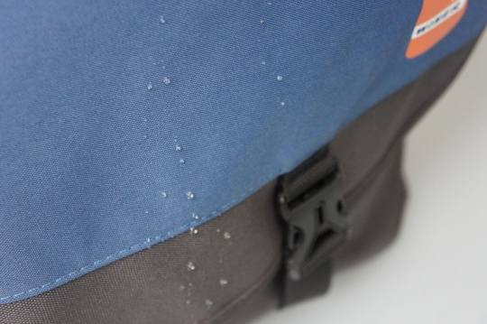 通过上图我们可以直接看到,水滴在包面上会有明显的颗粒感。只需轻轻擦拭,就可以不留痕迹。但值得注意的是,这种面料不等于100%的防水,如果水滴在上面停留时间过长,仍有一定机会被吸入。在实际评测过程中,我们发现,600D面料在沾到水滴的10秒内还是能够起到非常不错的防水效果。