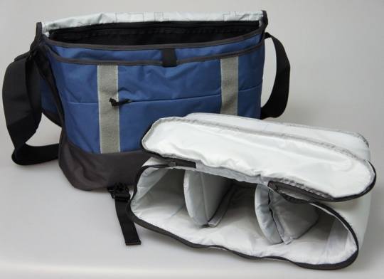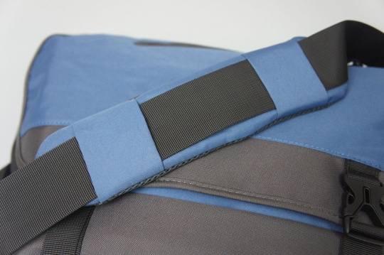 打开摄影包的掀盖,我们可以看到Vita系列中间有一个内胆,和两块间隔板。我们测试的这款M33型号的包包可以存放一台带普通镜头带手柄的全尺寸单反,外加一个长焦镜头和一个闪光灯。单就储物空间来说,Vita系列还是比较难超过一些专业的摄影包,但这款包主打的并非携带多镜头和高强度的安全保护,而是一包多用的灵活性。