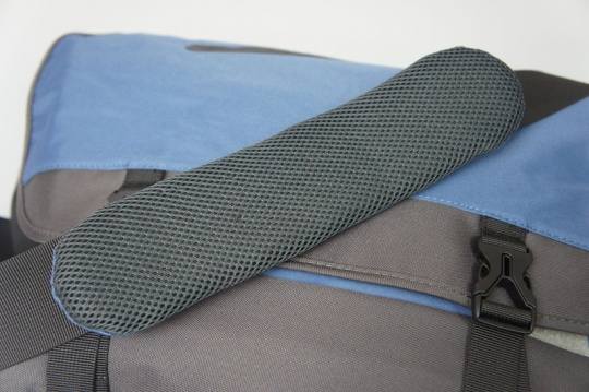 包带方面提供了一个可调的厚垫,一方面可以减低肩膊受到的压力,另一方面3D网材料也能通风透气,增加摩擦力,防止滑动。