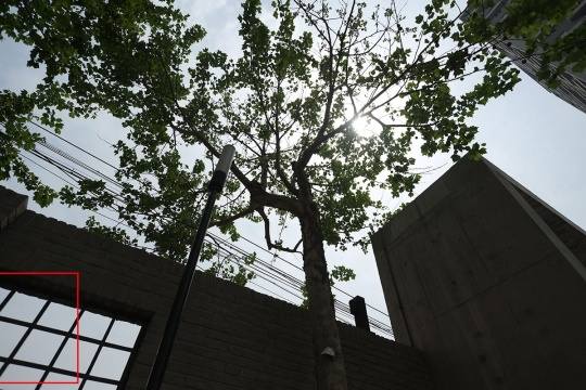 大光比逆光下,我们观察一下栅栏与天空明暗交接部分。从图中可以看到这款镜头F2.8全开光圈存在紫边,光圈收到F4后紫边明显减轻,F5.6之后基本消失。