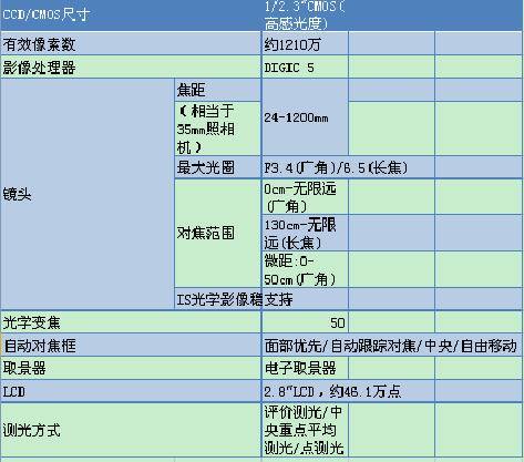 这是SX 50 HS的一些基本数据: