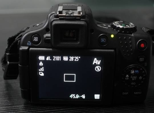 SX 50 HS的拍摄状态也非常清晰易懂,基本上与一般的数码单反无异。基本包含了电池电量、可拍张数、画面尺寸、当前拍摄模式、感光度等等。用家可以一目了然目前的拍摄信息。
