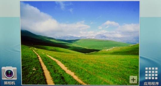 画面很简单,做下角的照相机图标和右下角的应用程序图标。