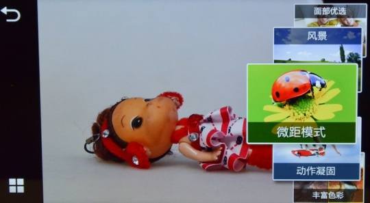 在智能选项里,包括了非常丰富的拍摄模式:微距模式、美肌模式、风景模式等等。