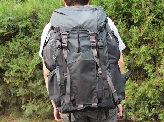 刚刚拿到这个包的时候,笔者被它巨大的外观所惊撼。它的三围尺寸达到了57 x 27 x 34 cm。一看外观就知道它定位于户外运动,野外探险所使用。