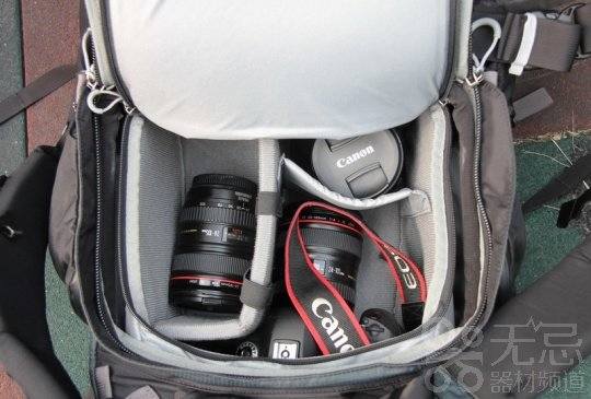 这个主器材空间很大,笔者认为可以完全放进3-4支镜头,包括70-200mm的长焦镜头。机身的话可以放入1-2台。