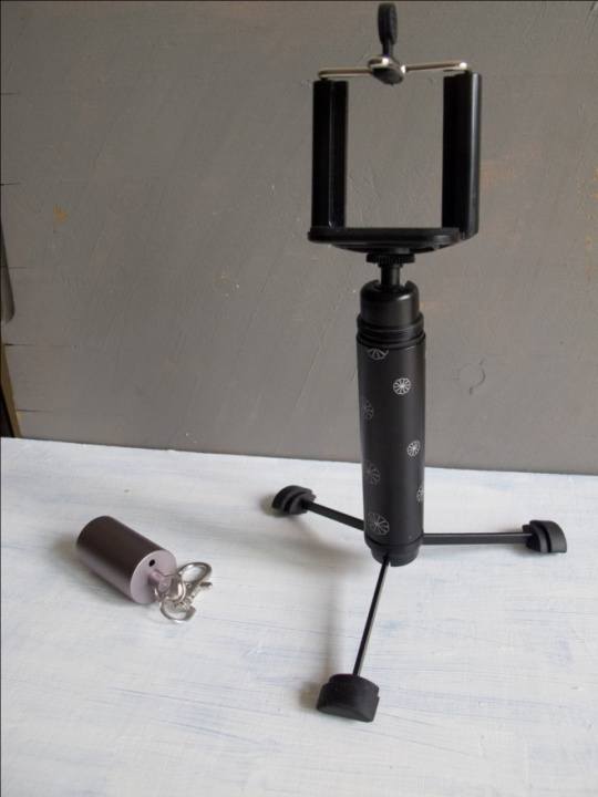 脚架和手机夹组合方便,拧下三脚架的帽,装上手机夹,拉出支脚就OK,三个脚的角度可调节,最大可拉平。