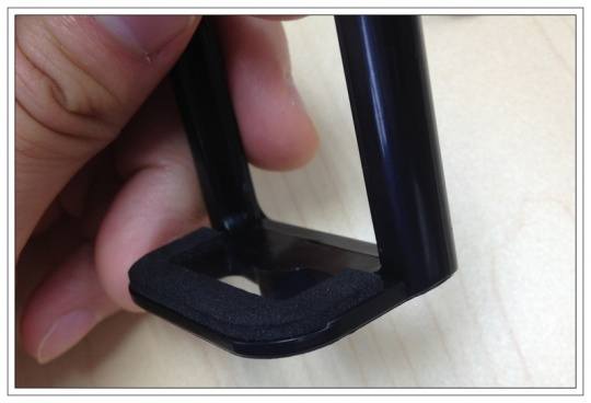 手机如何固定,是个难题。要夹得稳,又要轻便。一体成型的塑料架很牢靠(图片11),嵌入和脚架的连接,(图片-12)。顶端有橡胶拉扣(图片-13),底部有高密度海绵(图片14),以保护手机。如果要挑个刺,弹簧的力量比较大,顶部橡胶拉扣的设计似乎用不了几次就会断。我肯定是直接推上去,结果第一次松开时候,被夹了一下。