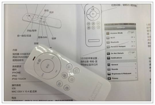 蓝牙遥控器是个亮点,不过只能苹果系用,有点像早年的Nano(图片15)。无忌的工作人员很细心地提前打电话来确认(表扬!)2粒CR2025电池,共10元。说明书很详细,不过要专门去买电池,不知道一般电脑商城里面有没有。(图片16)