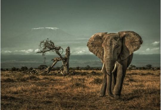 陈建强:非洲象是非洲草原最精彩的一幕,也是我最喜欢拍摄的动物之一,因为非洲象有着原始的野性美。当时在安博塞利草原上,一只非洲象正在以各种“表演”的姿势,呼唤另一头远方的大象,背景是古老的枯树与著名的乞力马扎罗雪山,有前景、中景、远景,构图布局前后呼应,左右平衡,高低错落,构成了一副非常和谐与完美的画面。
