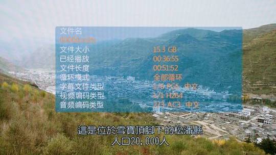 在播放过程中用户可以使用遥控的信息键查看播放文件的信息,比如文件长度、视频编码类型、音频编码类型。唯一缺乏的是文件编码率,这对普通用户来说也许无关重要。