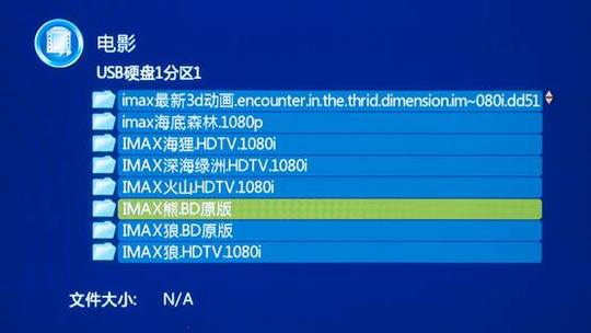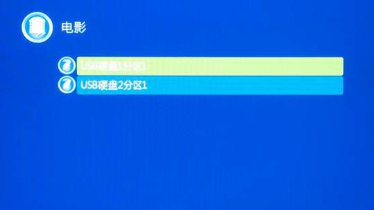 进入电影菜单后可以看到与播放器连接的硬盘,如果硬盘本身有多个分区也会被分别列出。使用遥控器可以在这些不同硬盘不同分区里面浏览,找到合适的电影按下确认键就开始播放。