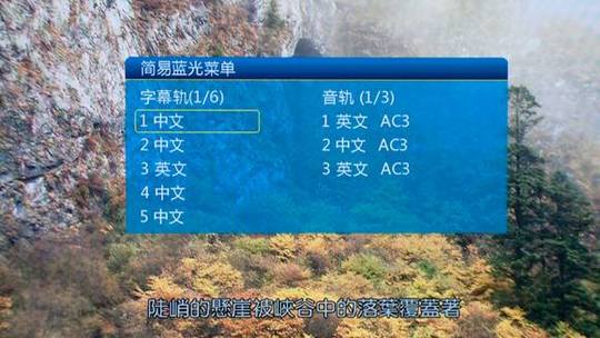 开始播放蓝光文件后用户可以使用简易蓝光菜单选择字幕轨和音轨,虽然还没有完全支持蓝光菜单,这个简易菜单可以让用户方便选择字幕和音轨。