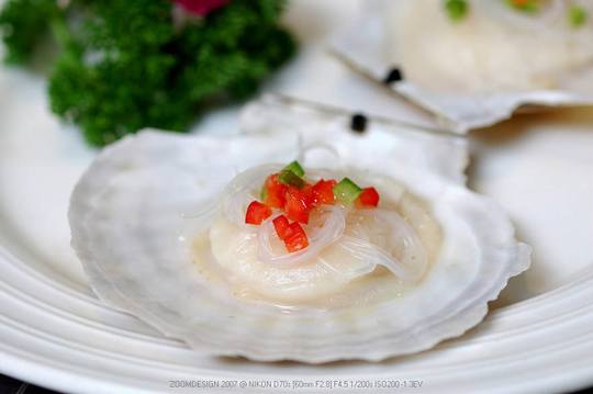 现在好像流行拍摄菜式用大大的光圈,以营造虚实的层次和所谓的空气感,我个人觉得那出来的效果如同大家都患了白内障看东西,连吃的什么都没有看清楚,就甭能激起大伙的食欲了!毕竟我觉得拍摄菜式不同于其他的艺术摄影,可以讲求更多的个性,如拍摄出更多的低调感观,但吃的食物、美食就是要光光亮亮,鲜艳夺目;污黑抹漆的,阴阳面的,或只看到一点清晰其余一派朦胧的,说真的,没意思!
