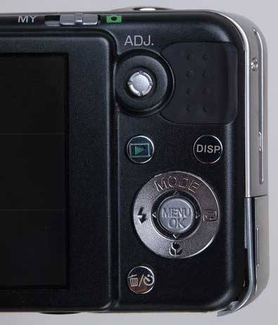 背面是一块2.7英寸23万像素的屏幕,色彩显示非常不错,尤其在回放状态下,清晰度非常高,响应速度也比较快,没有拖影现像。屏幕上方是一个三段的功能切换钮,可以在全自动拍摄模式、场景模式和“MY”的模式直接切换,和R6一样,R7也把视频拍摄功能融入到了场景模式中,这一点用起来感觉不太方便。顺便提一下,R7的视频拍摄功能是可以支持变焦的,虽然使用的是数码变焦,但是只要倍数不要过大,其显示精度还是不错的,能够在视频拍摄过程中变换焦距对于一些使用者来说是非常方便的,这一点值得提倡。