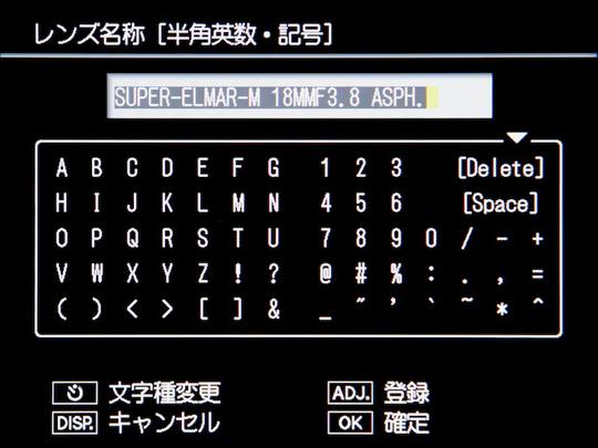 由于 GXR MOUNT A12与镜头没有电子触点,无法记录Exif信息,为了克服这个问题,GXR MOUNT A12在编辑“我的设置”信息时,可输入镜头名称、焦距和F值。现有机身的“我的设置框”中共能存储六种模式,SD卡上可存储六种模式。