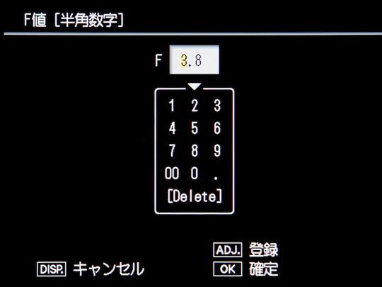 ![]() 输入镜头F值 |