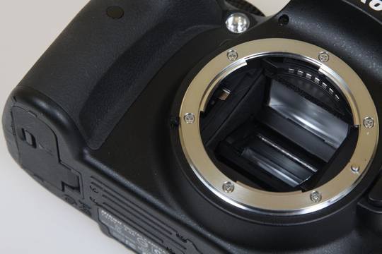 在相机卡口方面,D5100、D3100与D7000有明显不同,D5100、D3100延续了D40的设计,机身走轻巧路线,将机身内部驱动镜头AF马达取消,而D7000不同,我们可以看到卡口上有驱动镜头AF连杆头。这种设计不同造成D5100与D3100在使用AF-D镜头时不能实现AF,而D7000可以很好支持,另外D7000还相比D90增加了光圈耦合环,它的作用是使镜头当前的光圈值通过光圈耦合环传递给机身(A档和M档),并配合机身的测光系统产生一个正确的曝光参数,实现准确的曝光。