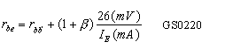 式中 表示晶体管基区的体,对一般小功率管约为300Ω左右(计算时,若未给出,可取为300Ω),IE 为通过管于发射极的静态电流,单位是mA。在IE ≤5mA范围内,式GS0220计算结果与实际测量值基本一致。