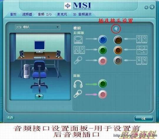 市场主流低端的6(5.1)声道主板一般配置3个插孔的音频接口,这三个插孔分别是