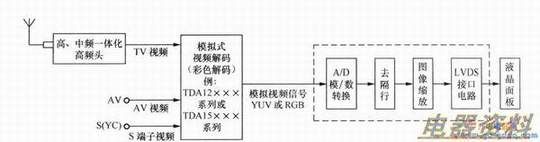 在常规CRT彩电中使用的就是模拟式解码电路,所谓模拟式视频解码就是直接对输入的模拟全电视信号进行解码。