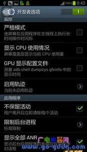 在调试模式中,我们可以改变Android原本的后台模式,减少对系统资源的浪费,从而提高手机的运行速度。在调试模式中找到“应用程序”,在下面找到并勾选“不保留活动”选项,这时候打开任意一款游戏点击Home键返回桌面,然后再次点击图标运行游戏,你会发现游戏是重新载入而不是直接回到游戏界面,游戏放在后台也并没有占用运存,这一点和Windows Phone的后台模式十分相似。当然勾选这个选项后并不会影响QQ和微信这类应用。